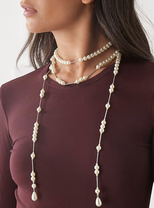 Reclaimed Vintage wraparound necklace with pearls in silver
