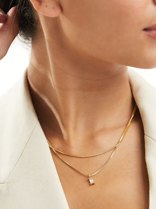 ASOS DESIGN 14k gold plated multi-row necklace with cubic zirconia charm with gift bag - GOLD
